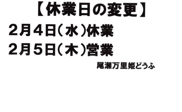 2月休業日変更のお知らせ